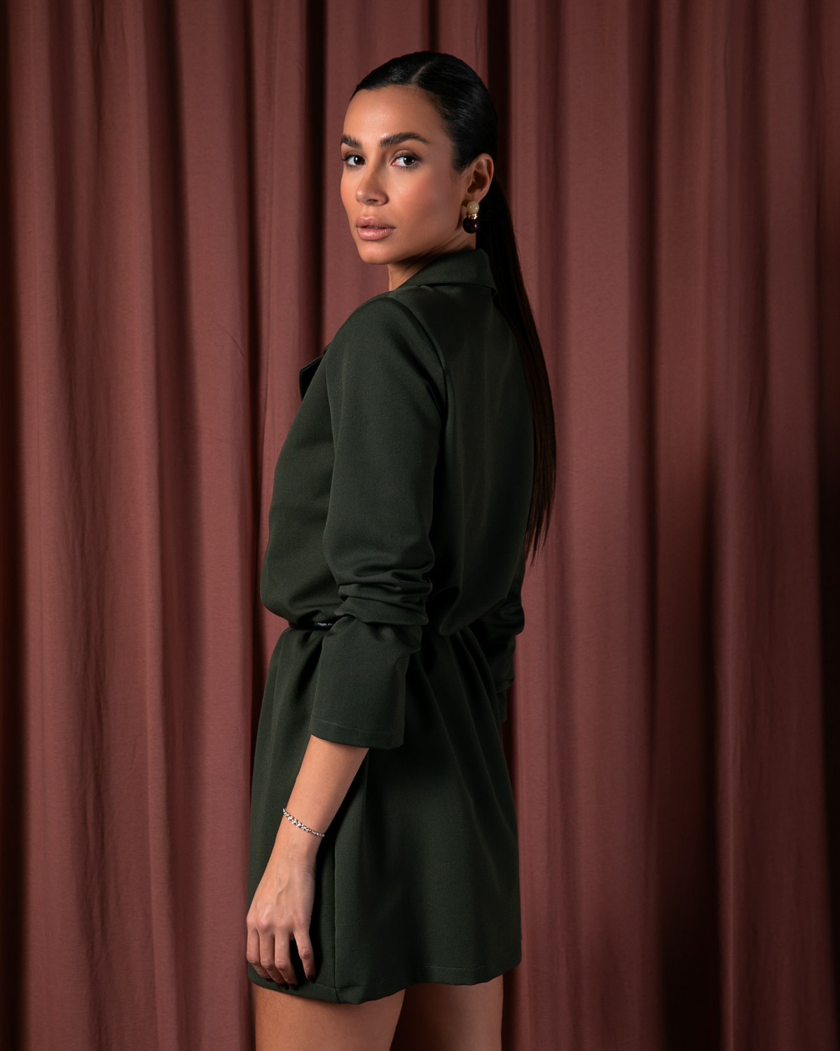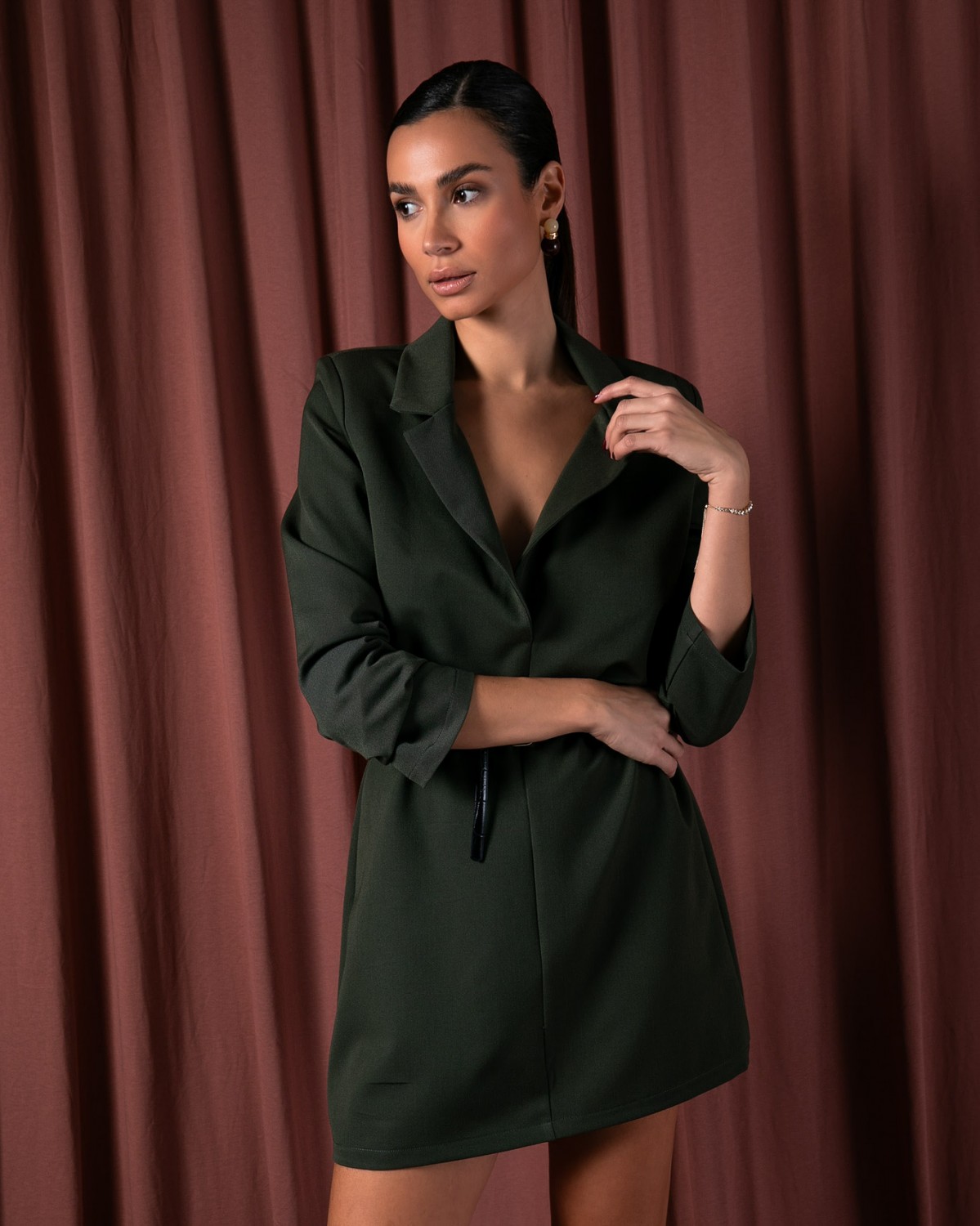 Φόρεμα mini μακρυμάνικο με πέτο και γιακά Army