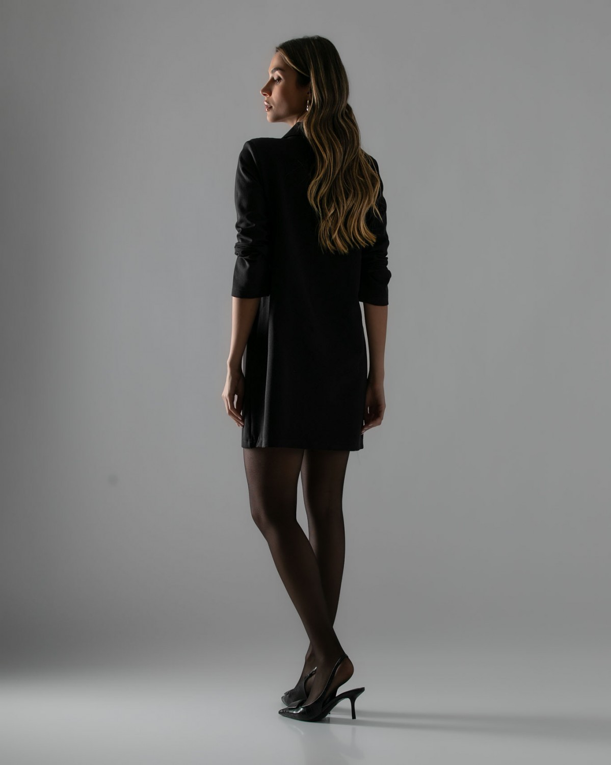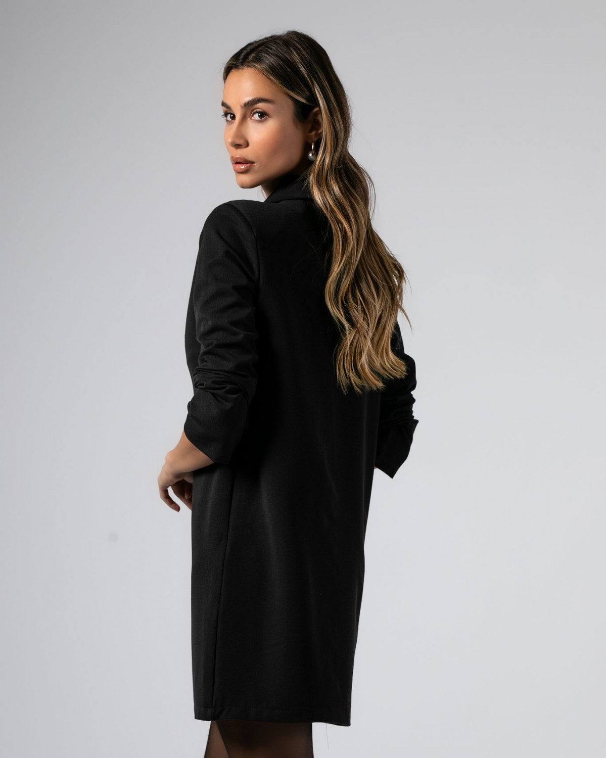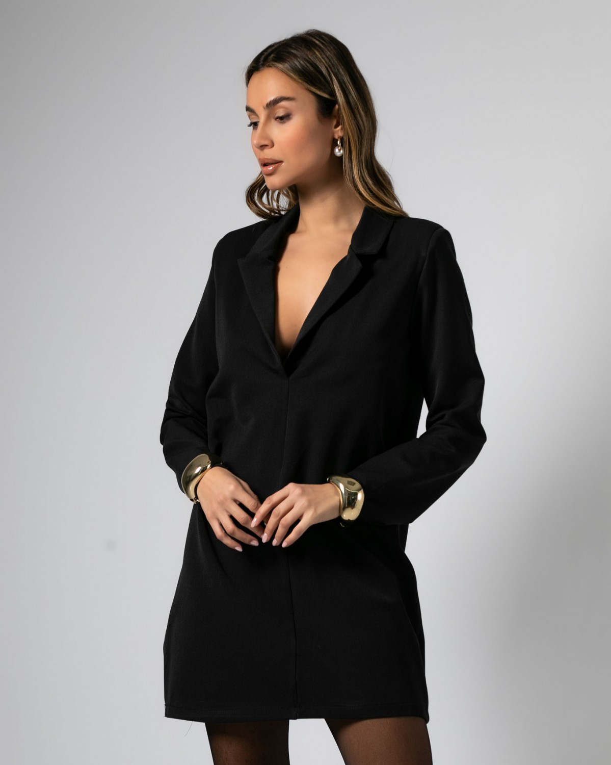 Φόρεμα mini μακρυμάνικο με πέτο και γιακά Black