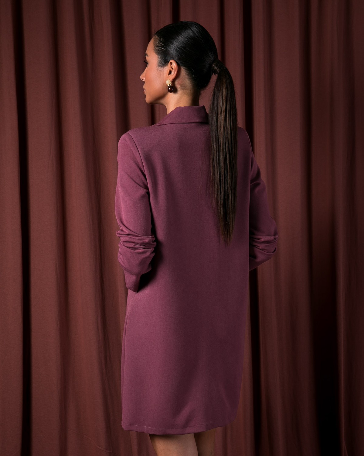 Φόρεμα mini μακρυμάνικο με πέτο και γιακά Wine ginger