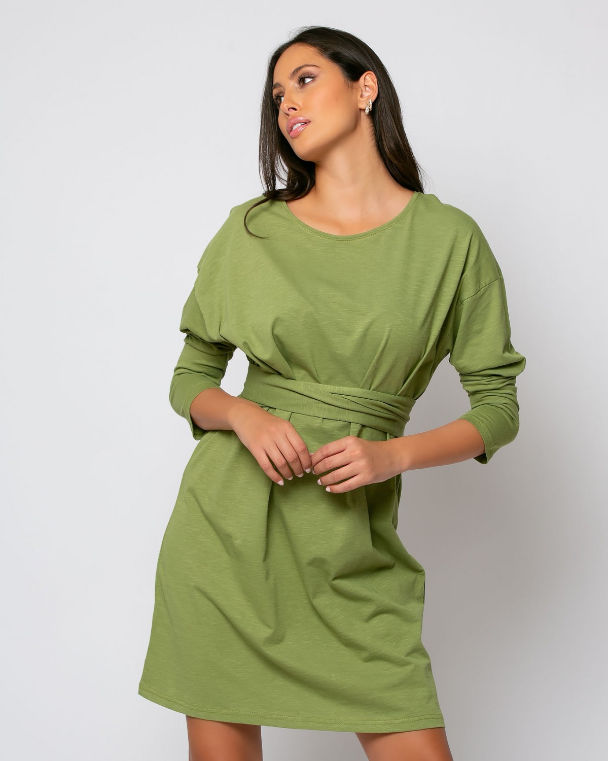 Φόρεμα βαμβακερό oversized Λαδί
