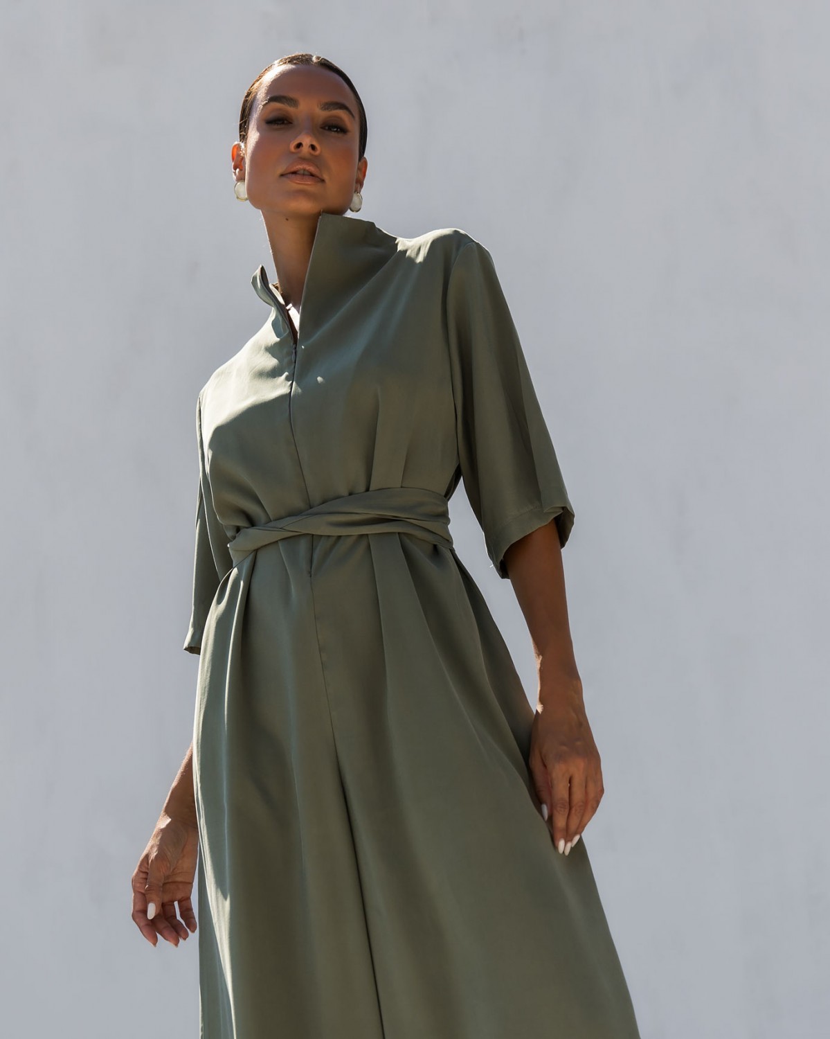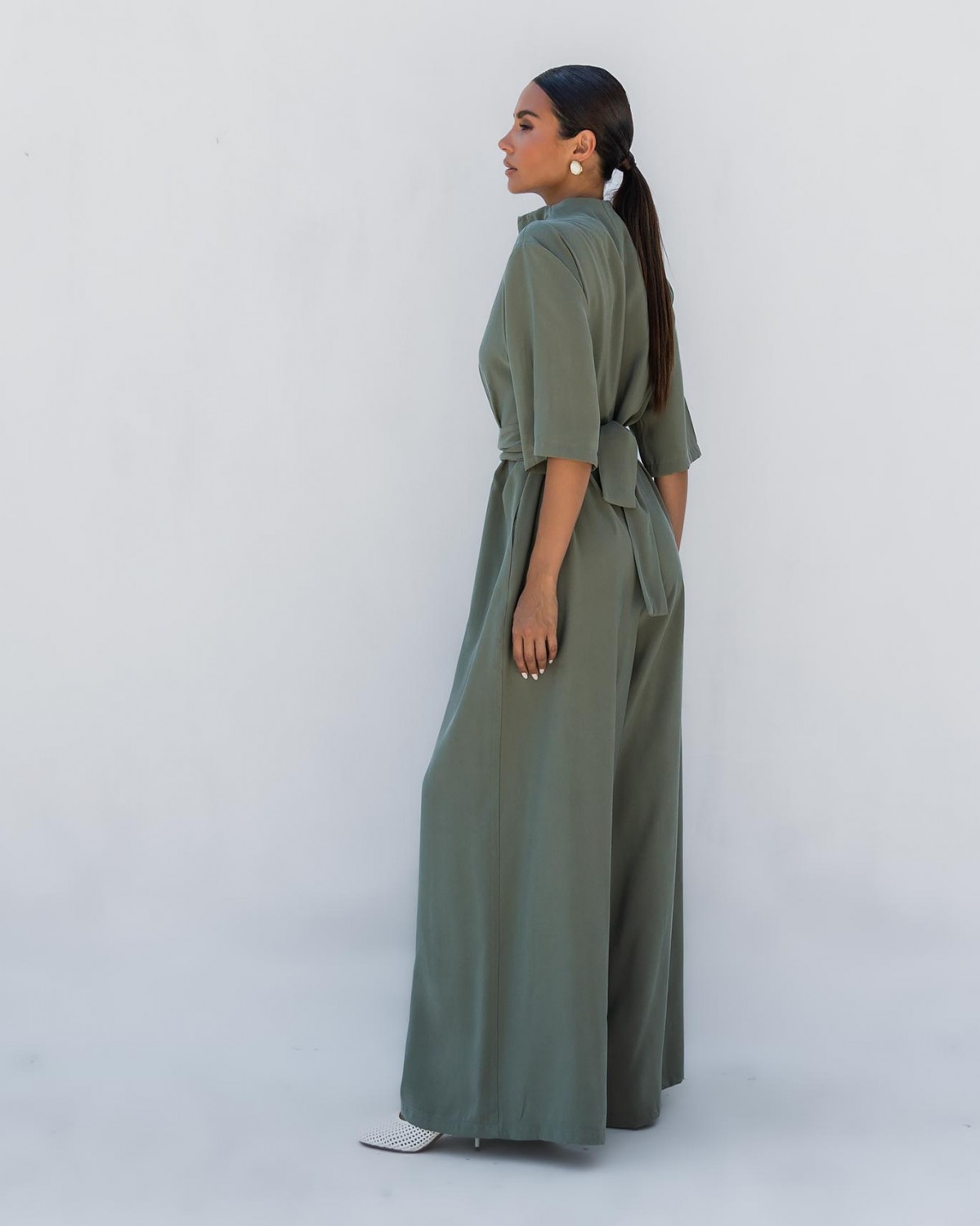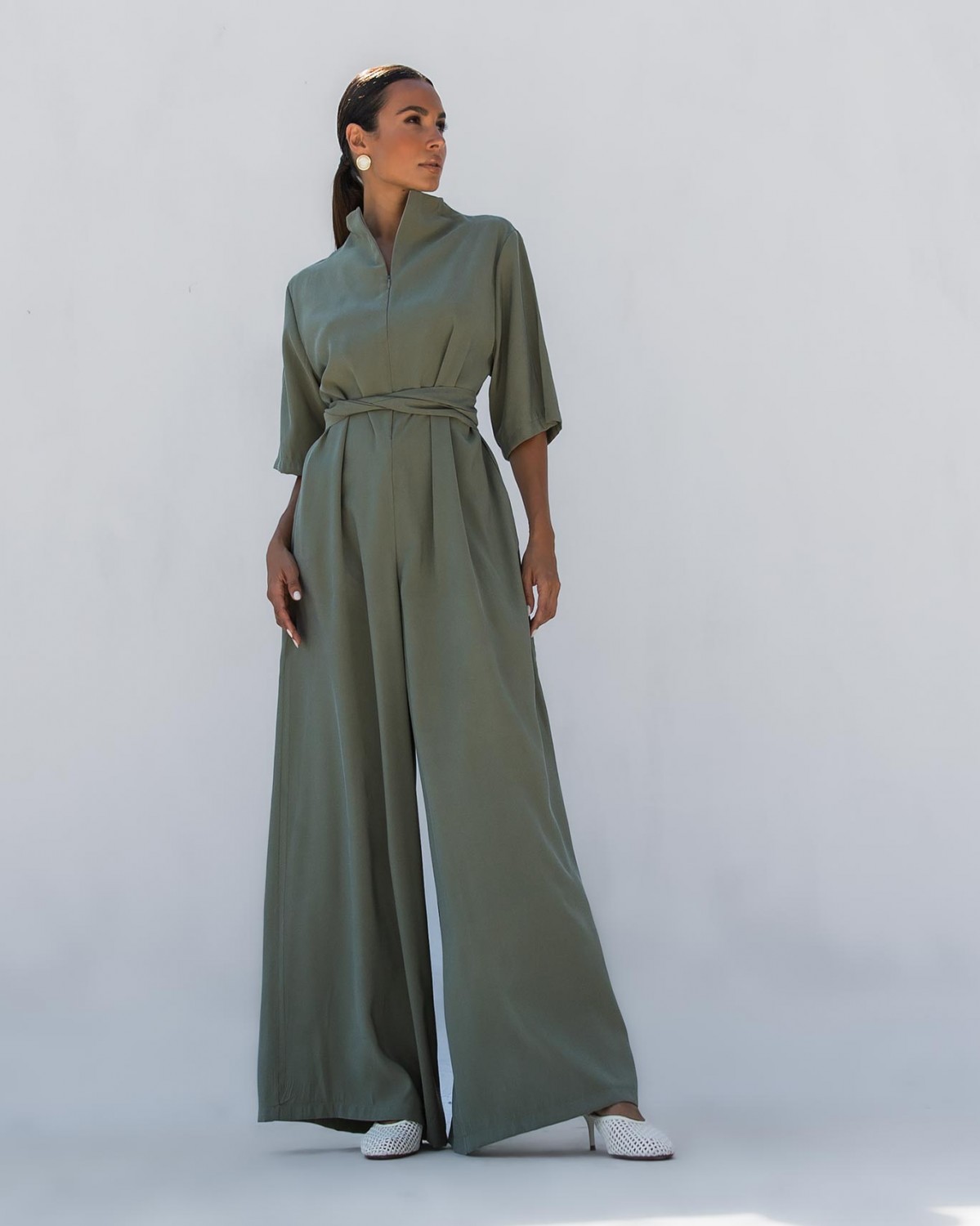 Φόρμα ολόσωμη κοντομάνικη με φερμουάρ και ζώνη Menthol