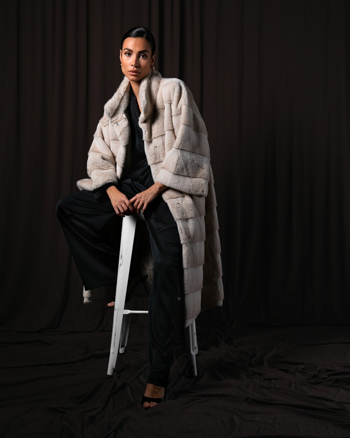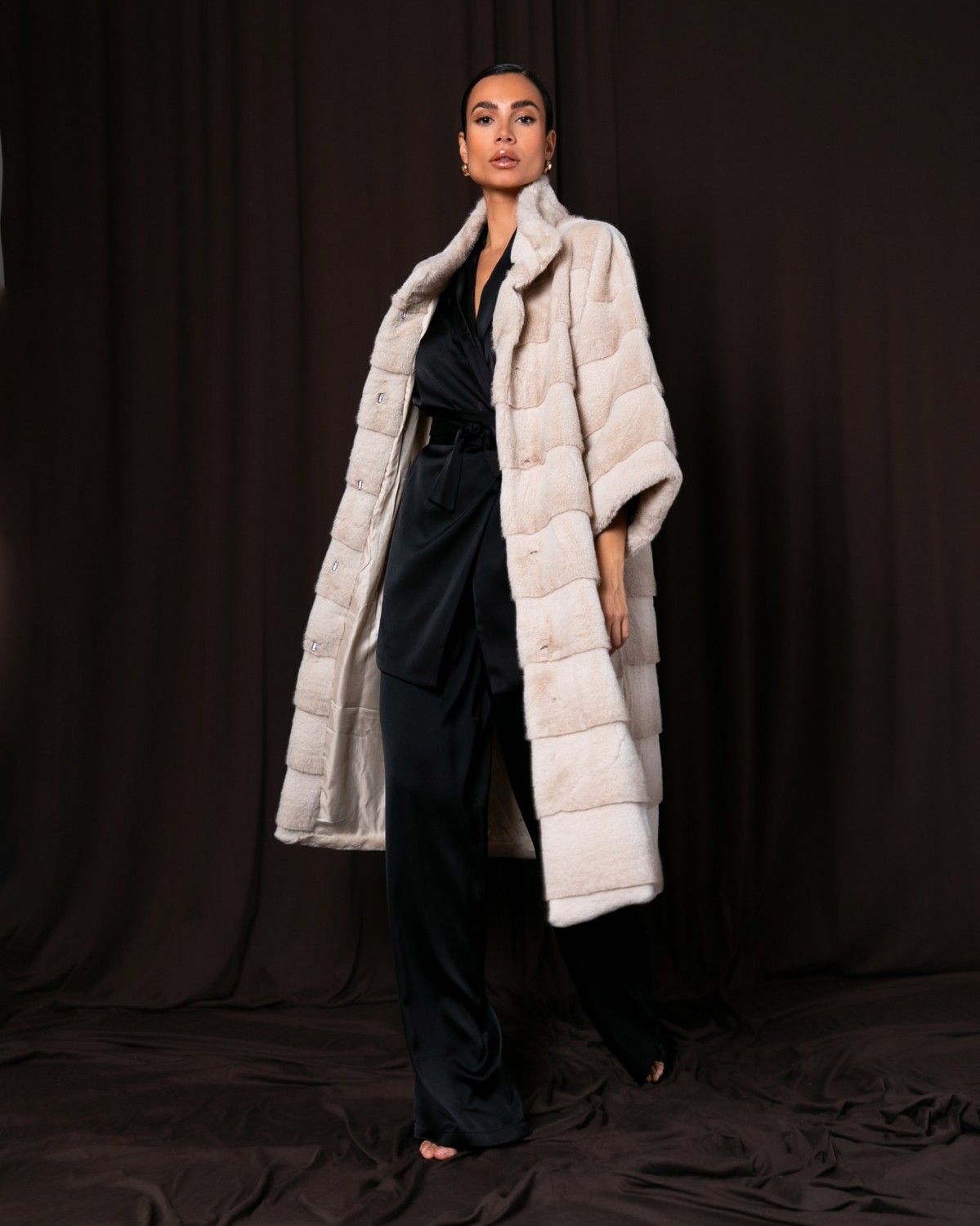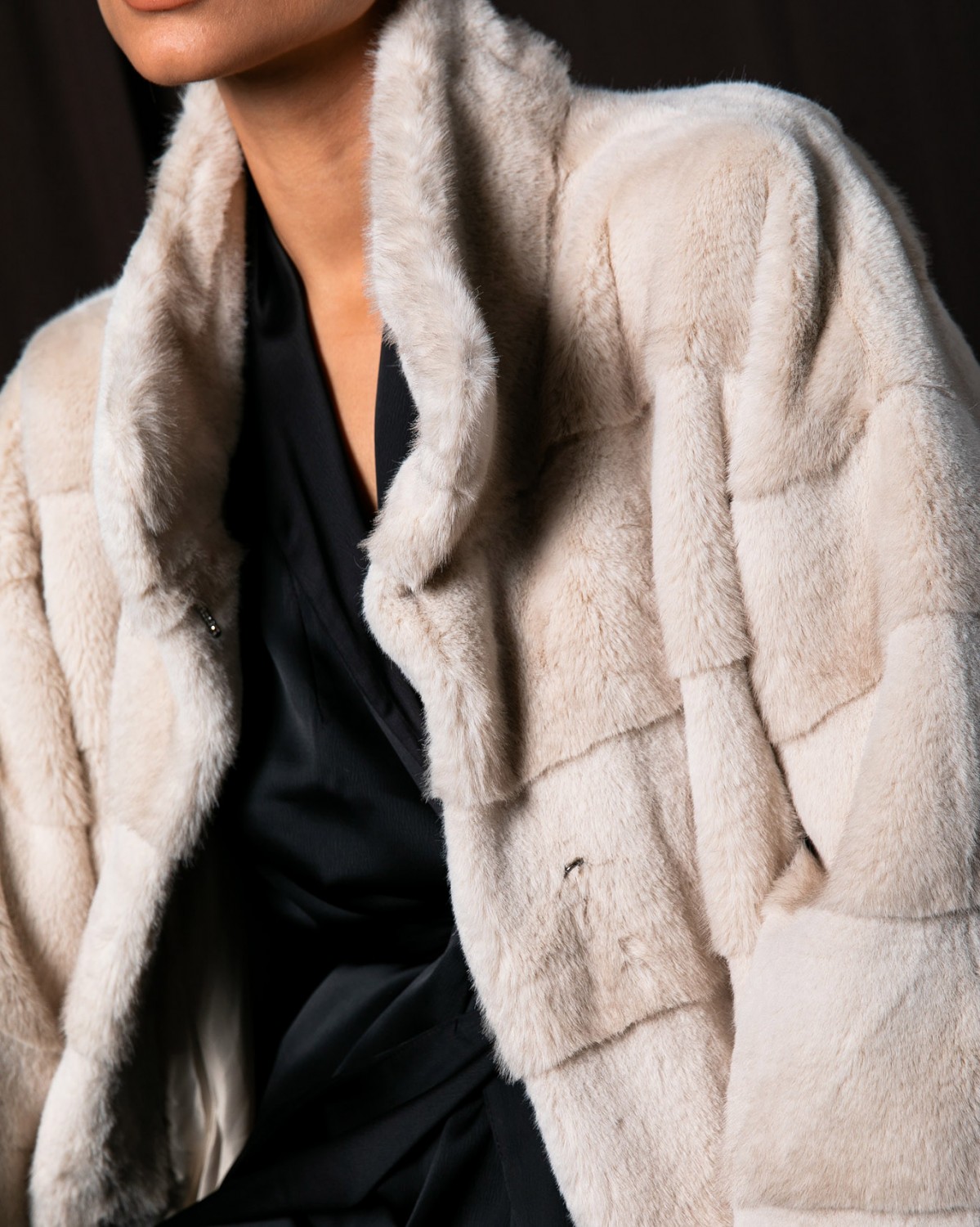 Γούνα midi με μανίκι 3/4 Cream