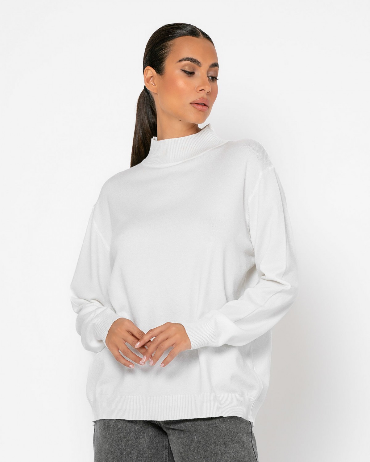 Μπλούζα μακρυμάνικη ψιλό πλεκτό απαλή υφή ζιβάγκο Εκρού
