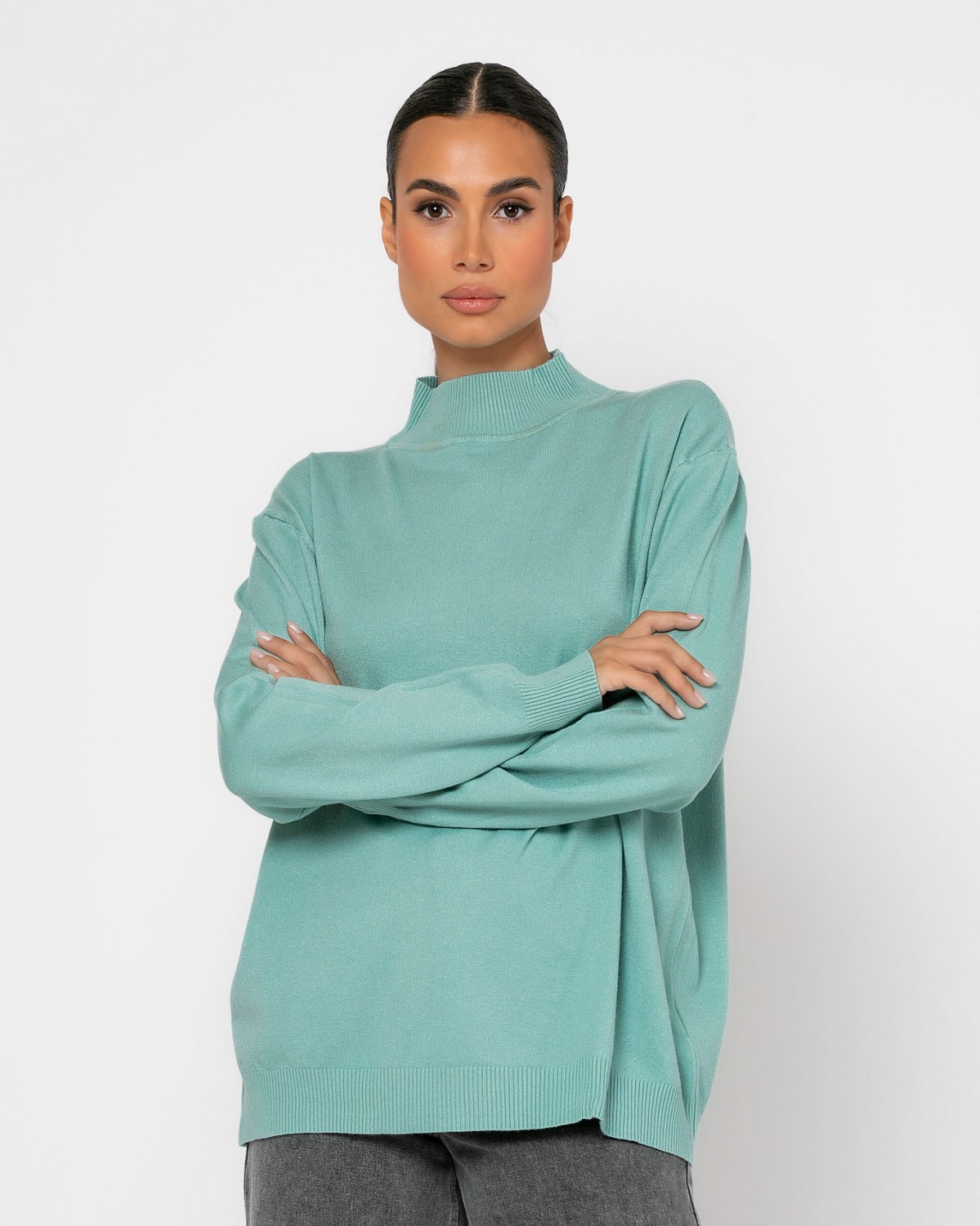 Μπλούζα μακρυμάνικη ψιλό πλεκτό απαλή υφή ζιβάγκο Menthol