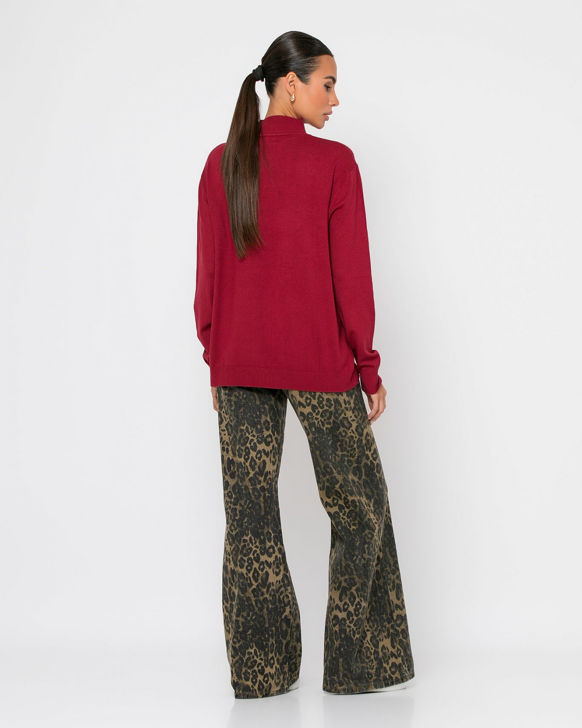 Μπλούζα μακρυμάνικη ψιλό πλεκτό απαλή υφή ζιβάγκο Μπορντώ