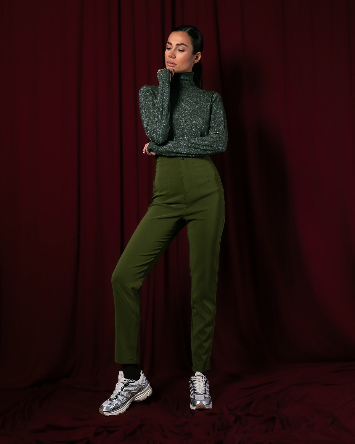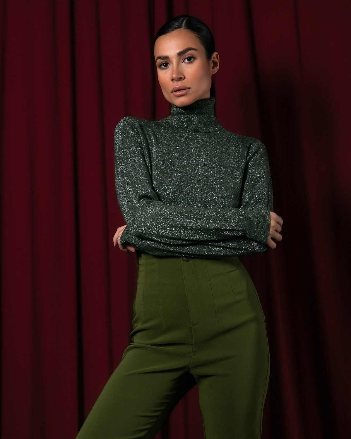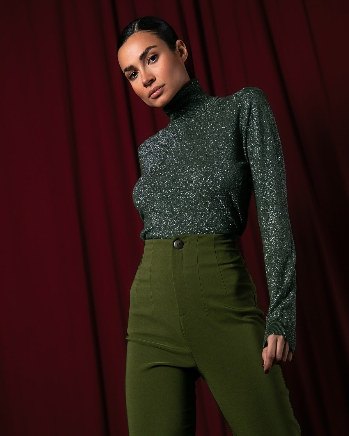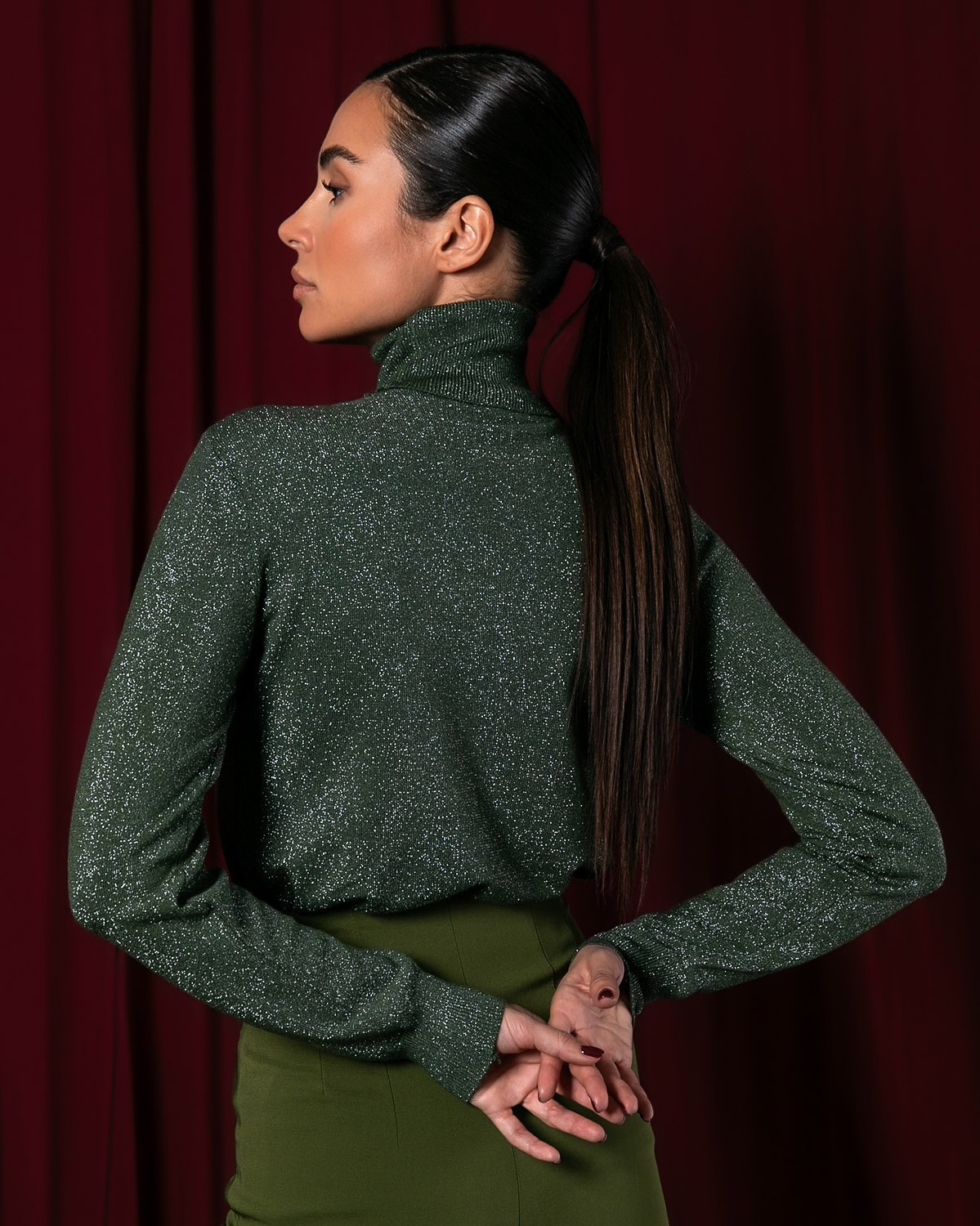 Μπλούζα μακρυμάνικη ψιλό πλεκτό ζιβάγκο με λούρεξ Army