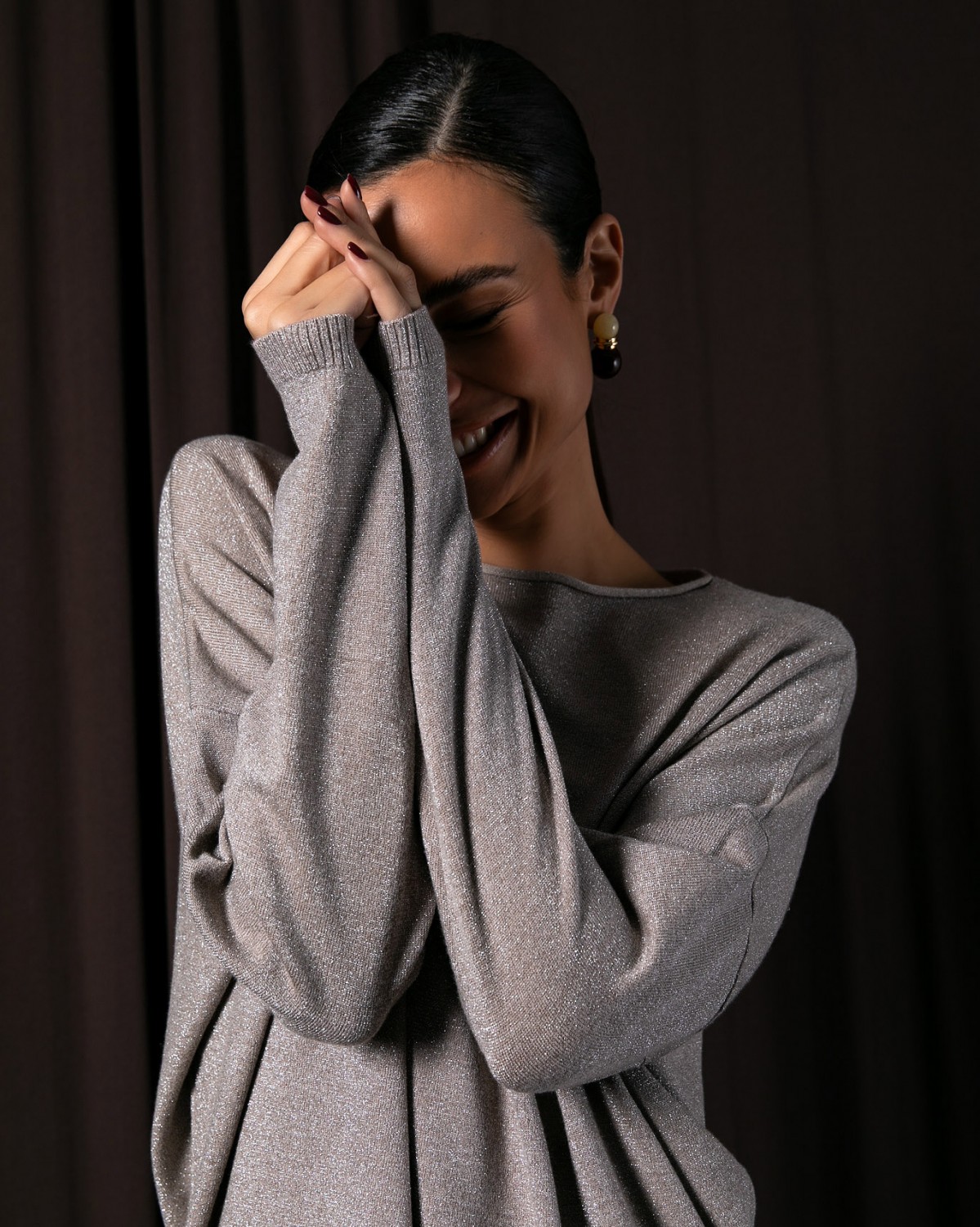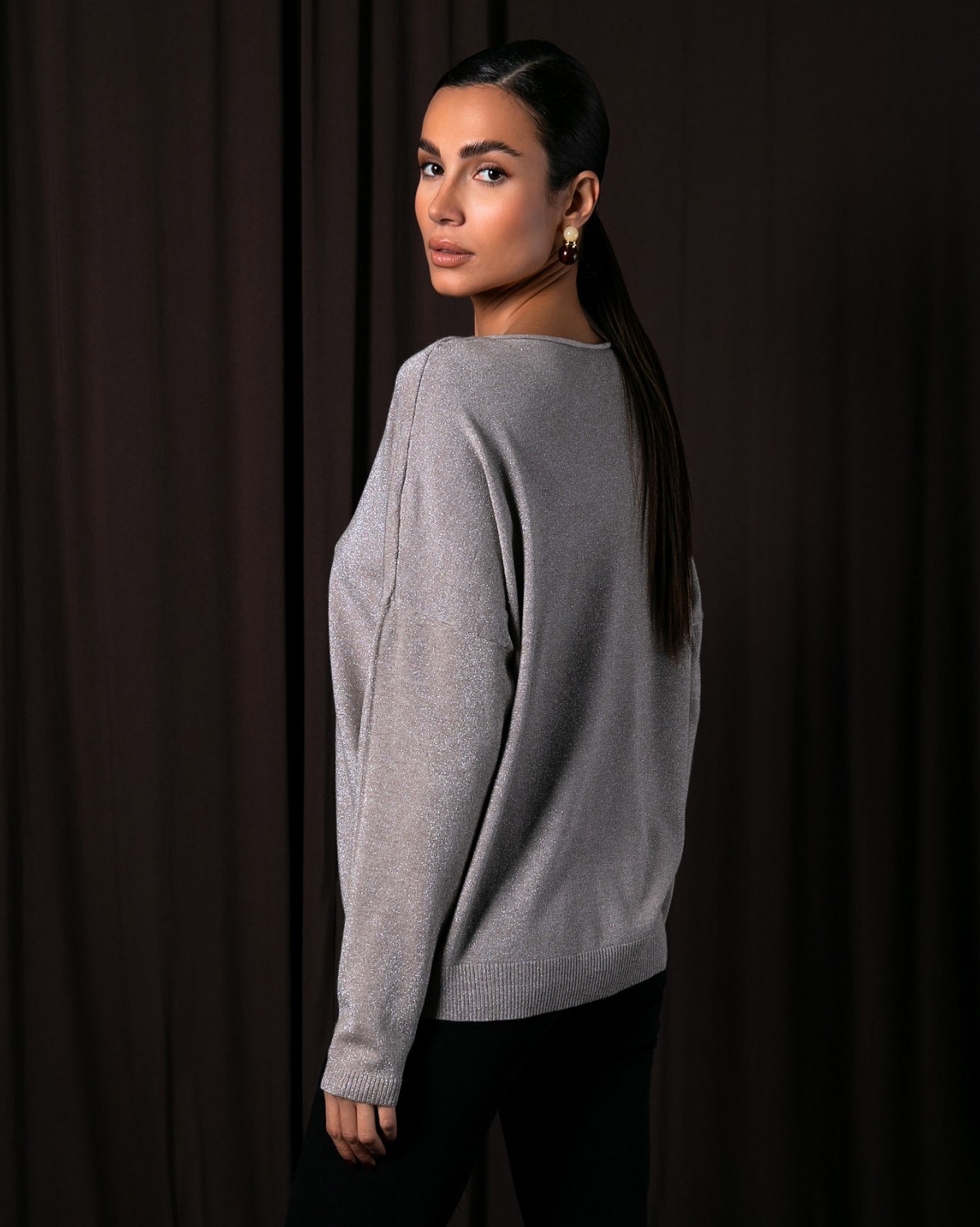 Μπλούζα πλεκτή μακρυμάνικη με λούρεξ Beige