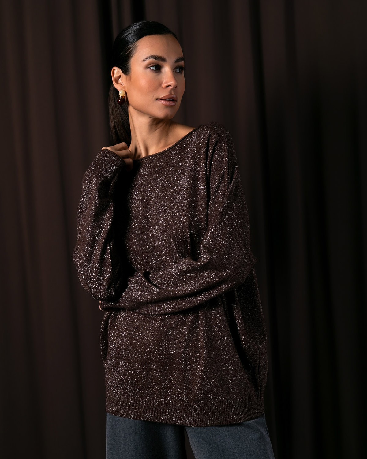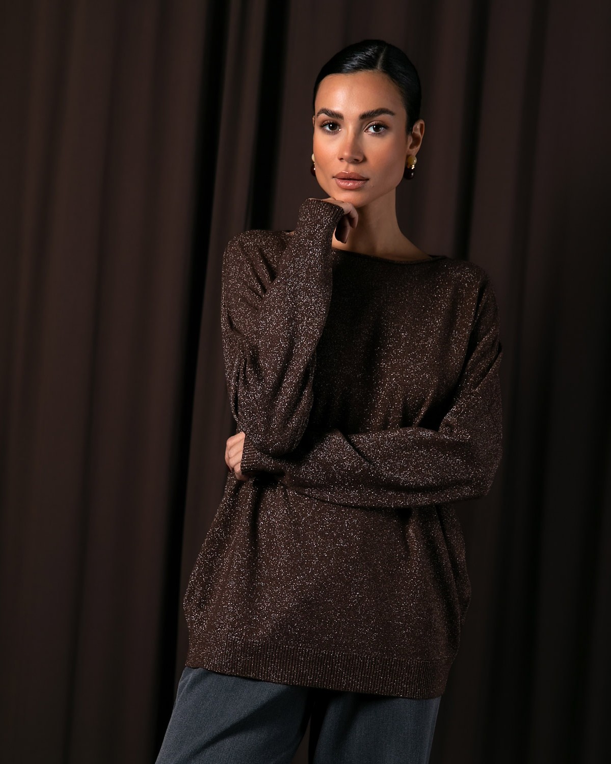 Μπλούζα πλεκτή μακρυμάνικη με λούρεξ Brown