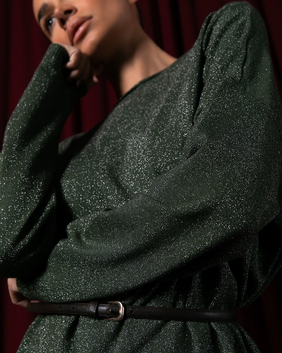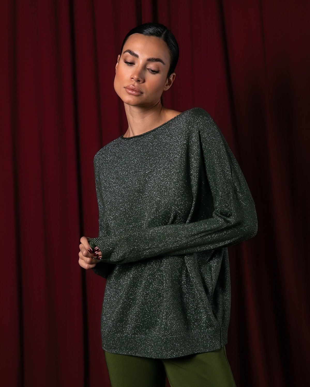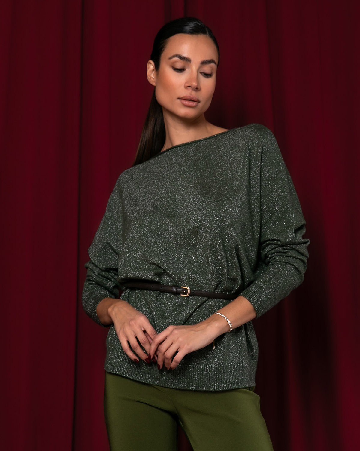 Μπλούζα πλεκτή μακρυμάνικη με λούρεξ Χακί