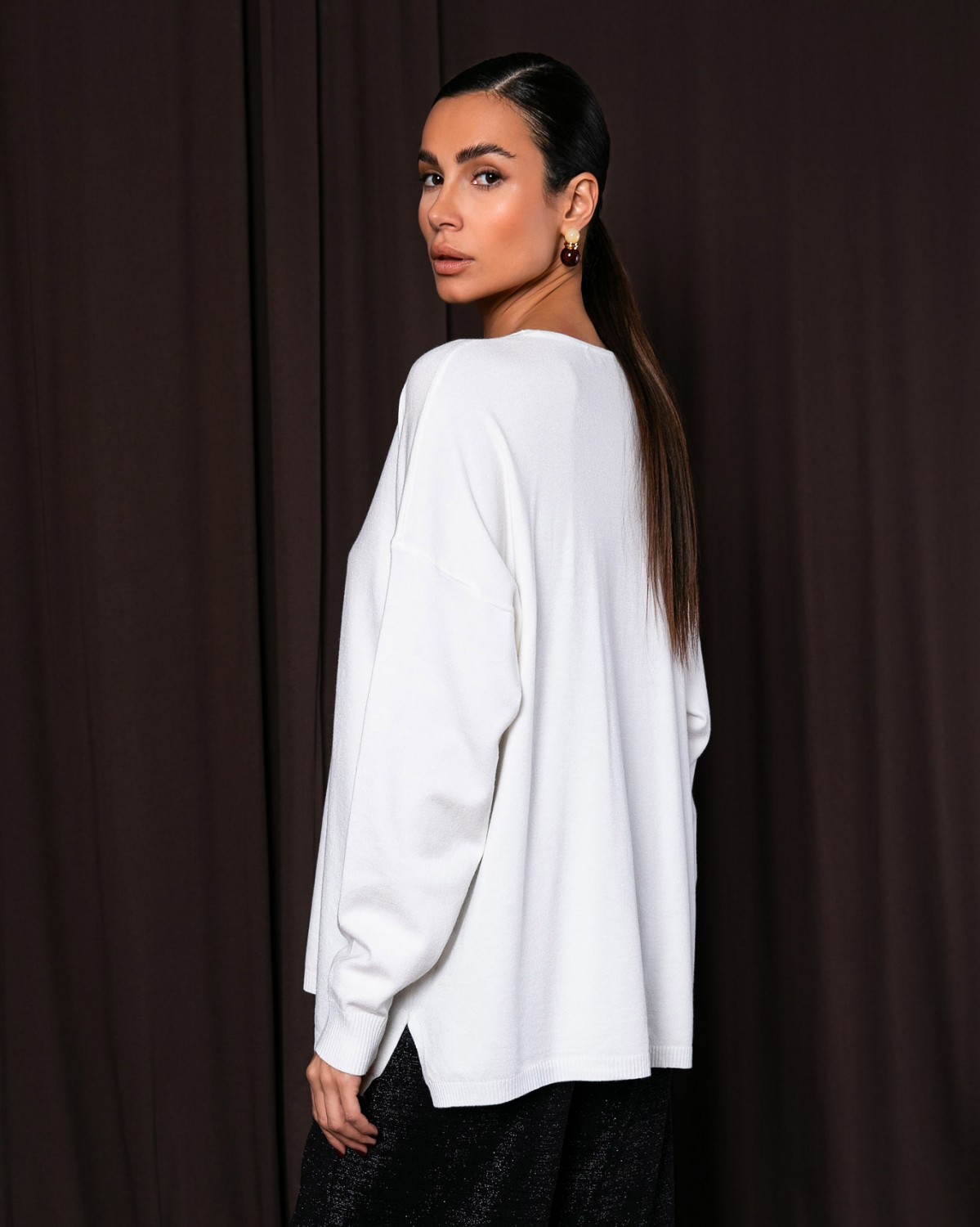 Μπλούζα ψιλό πλεκτό απαλή υφή με "V" Εκρού