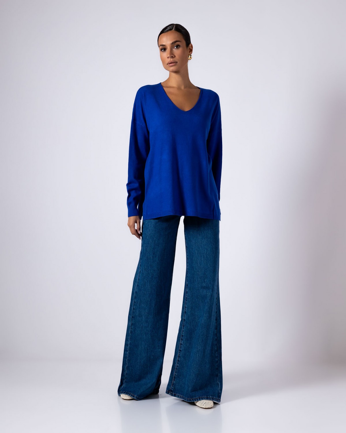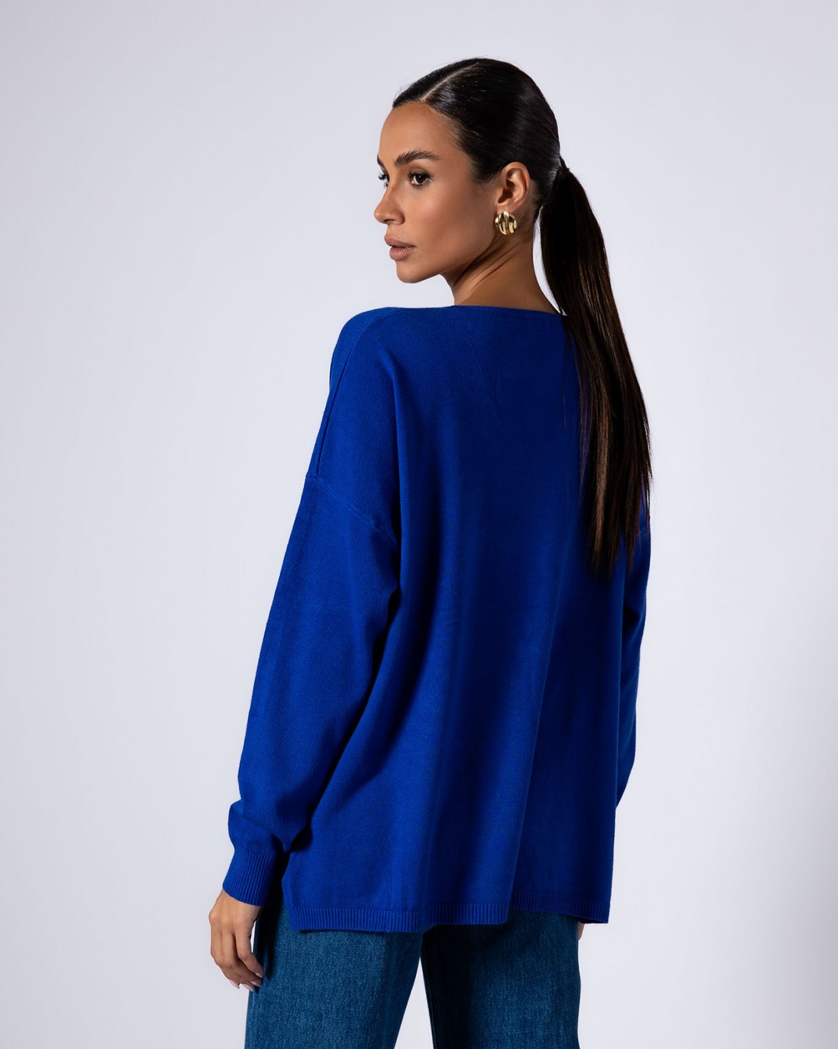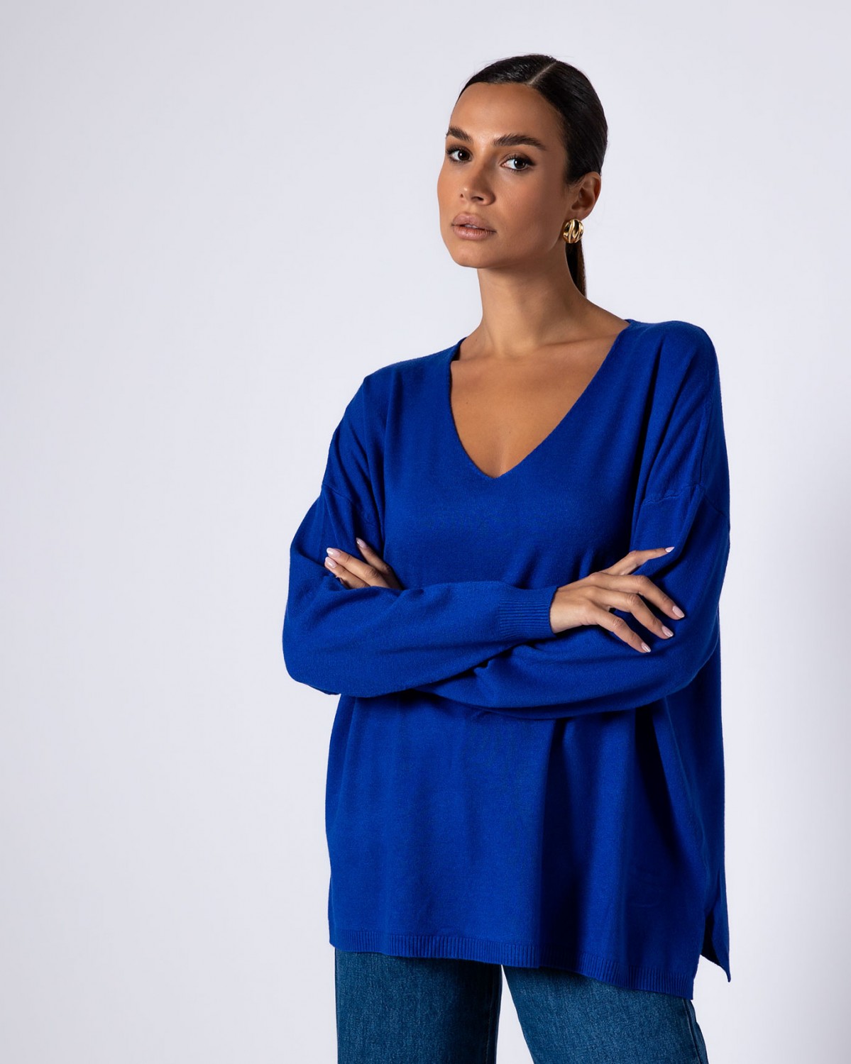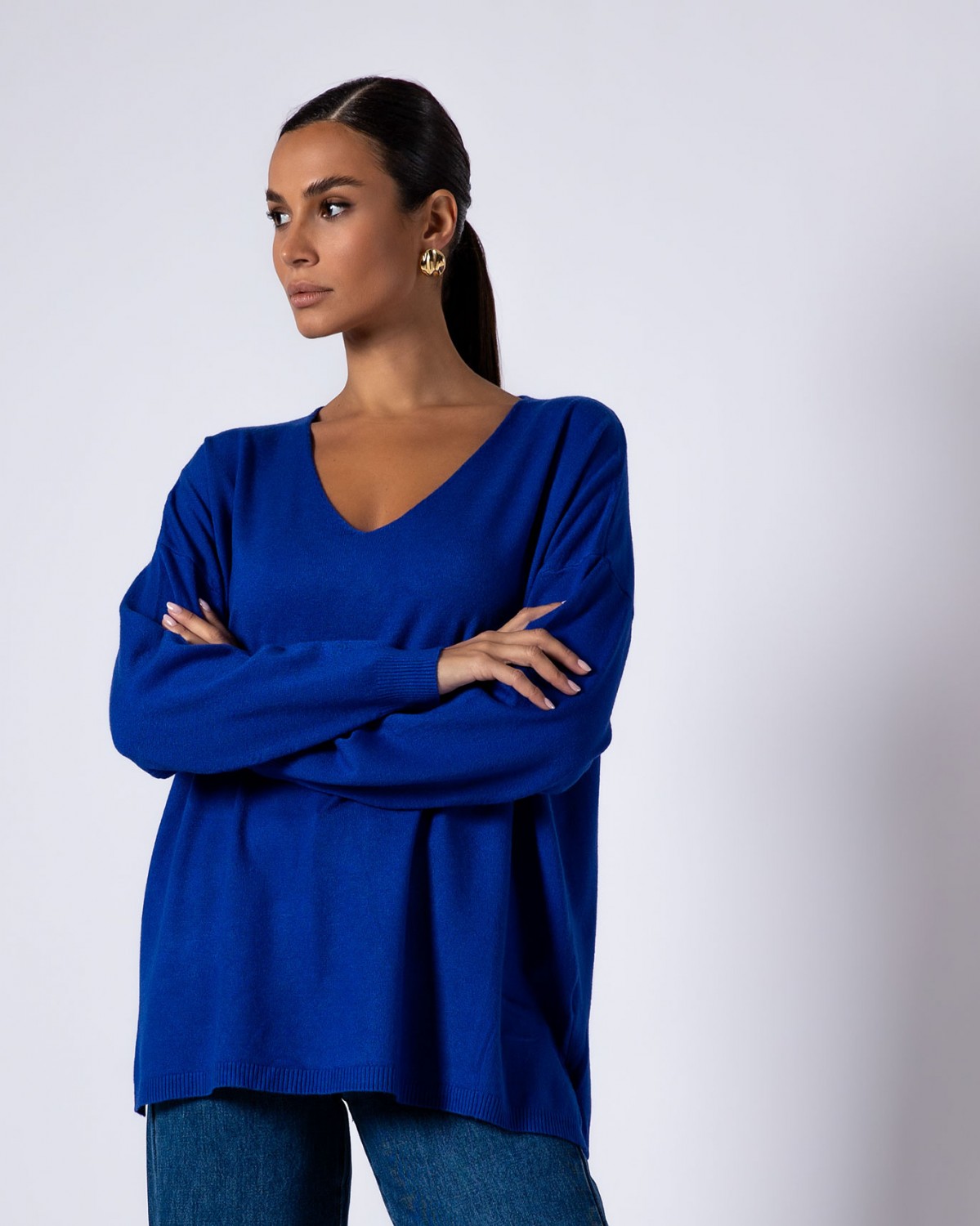 Μπλούζα ψιλό πλεκτό απαλή υφή με "V" Μπλε ρουά