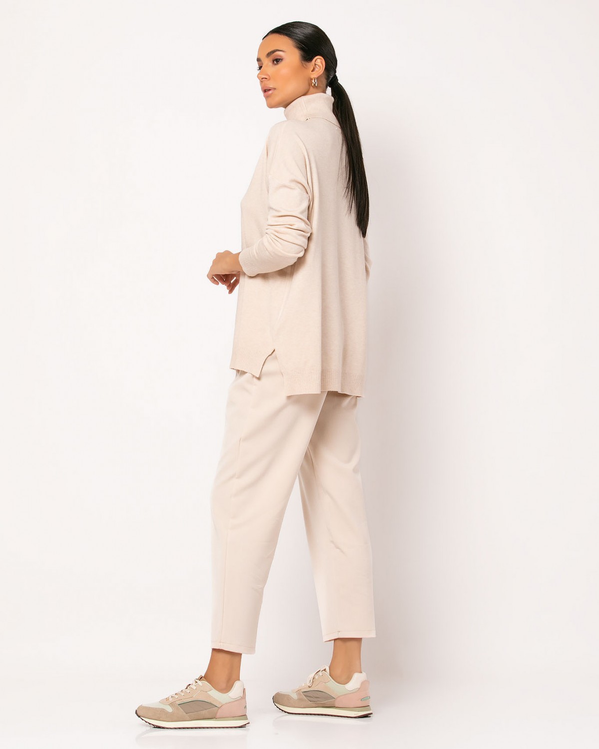Μπλούζα ψιλό πλεκτό απαλή υφή ζιβάγκο με άνοιγμα στο πλάι Cream