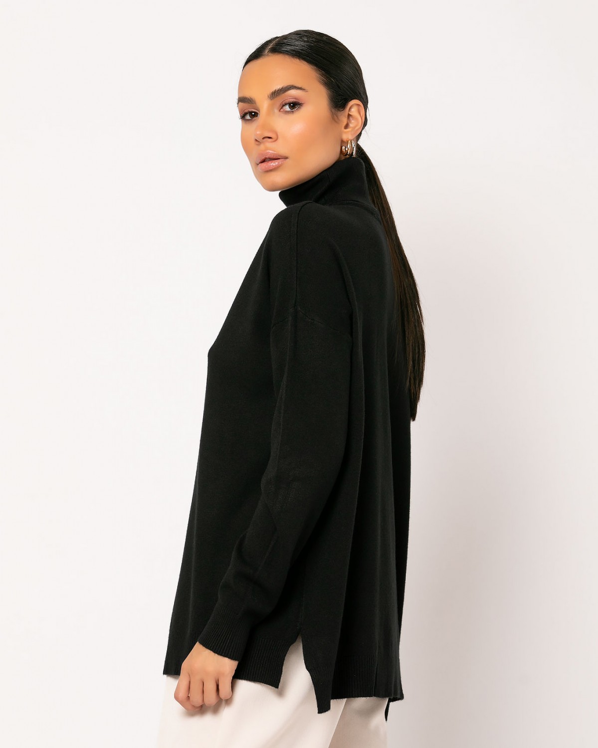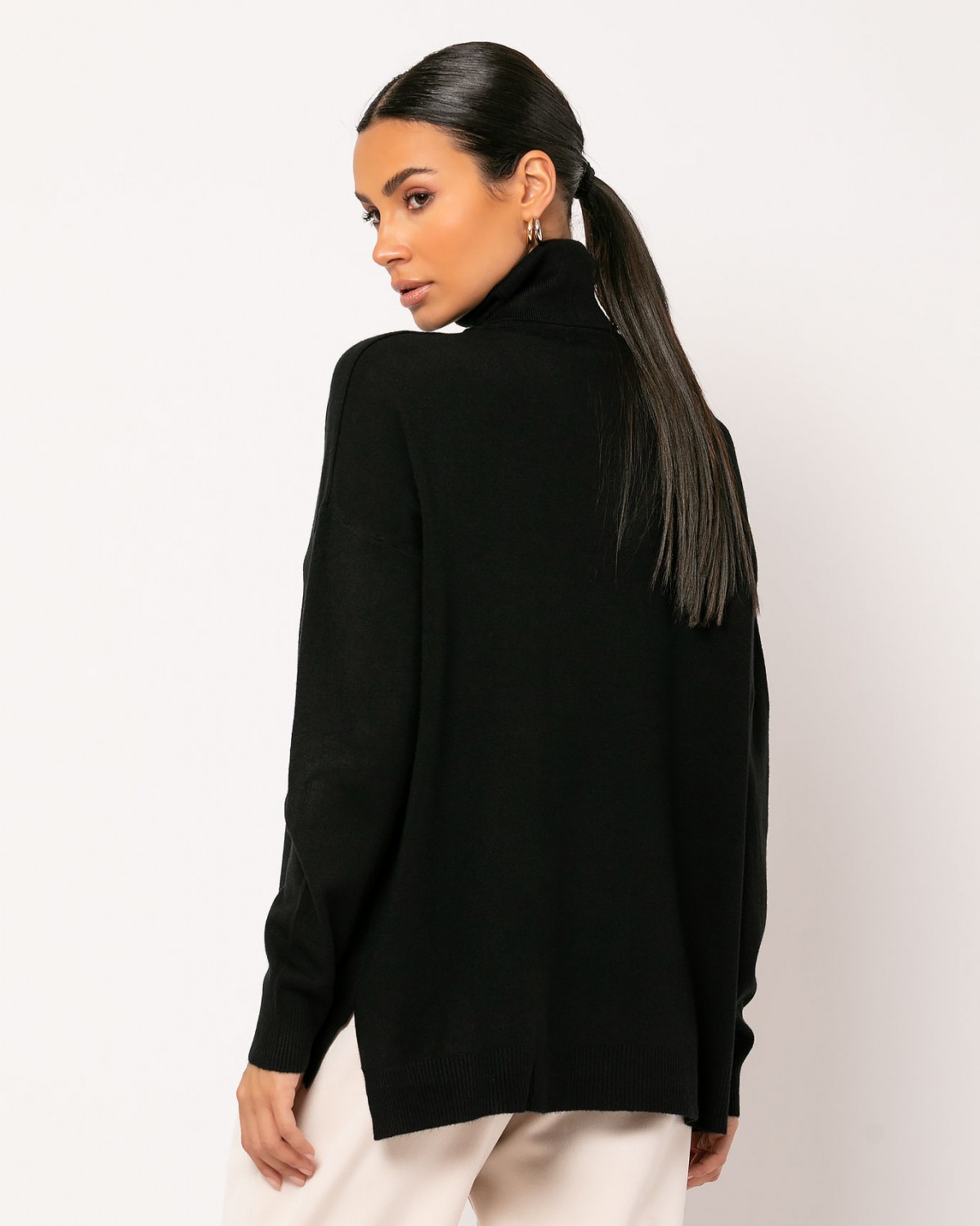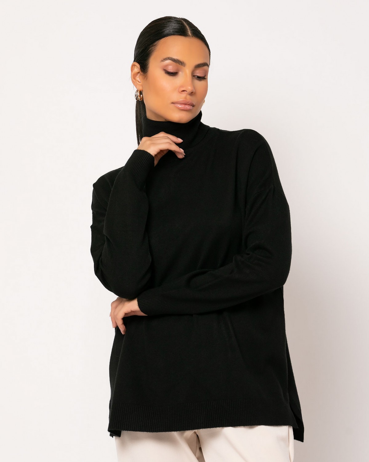 Μπλούζα ψιλό πλεκτό απαλή υφή ζιβάγκο με άνοιγμα στο πλάι Μαύρο
