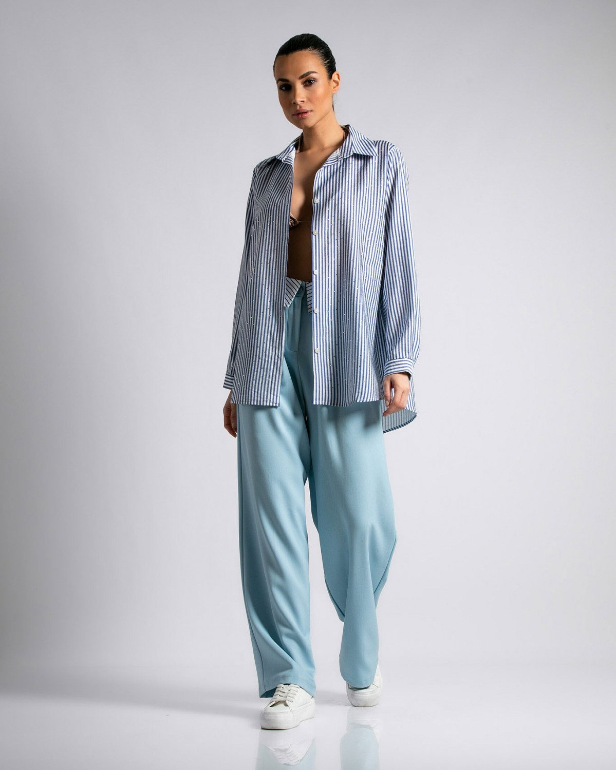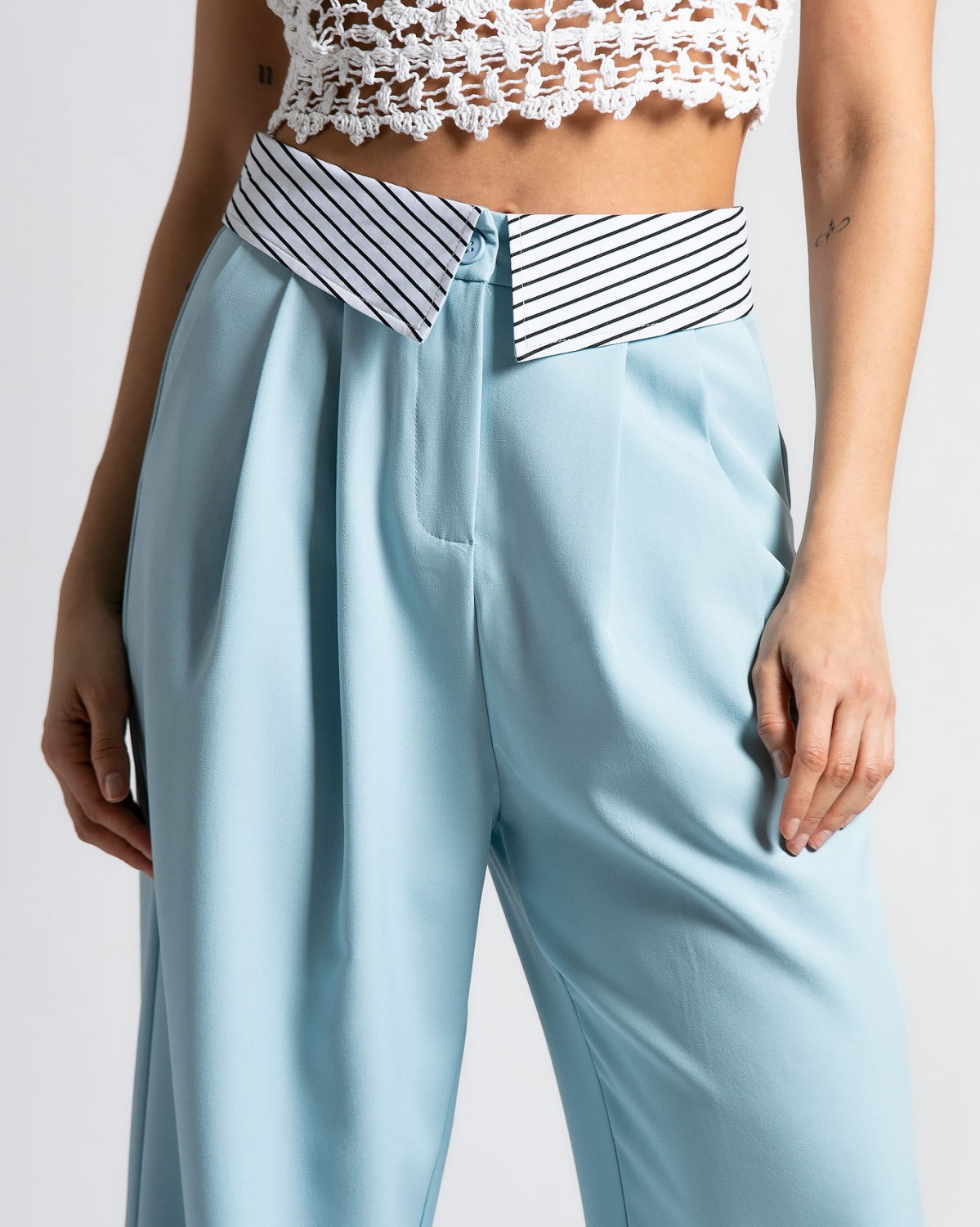 Παντελόνι ψηλόμεσο με πιέτες και διπλό ύφασμα στην μέση Γαλάζιο