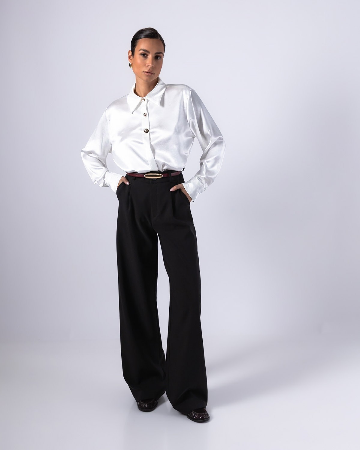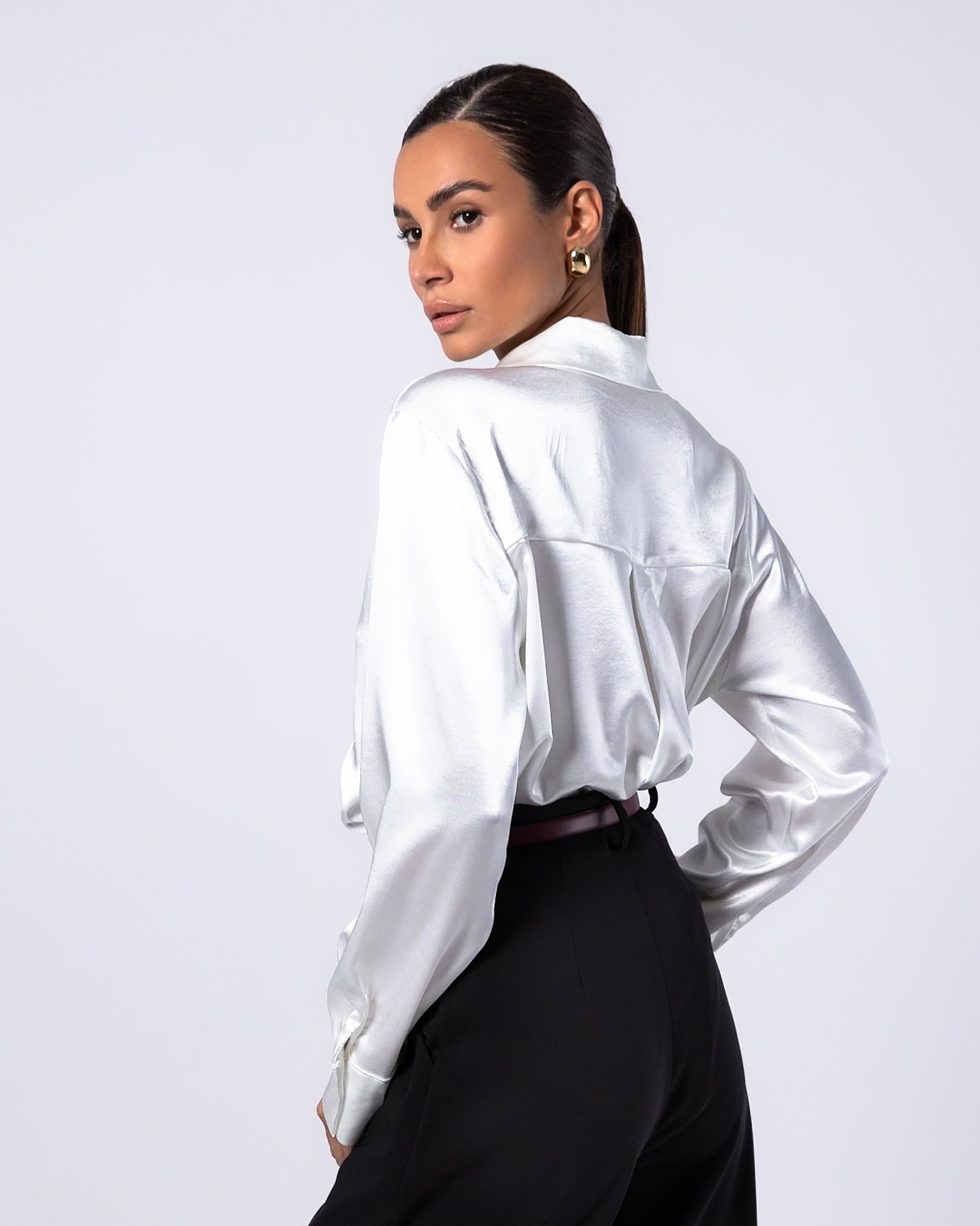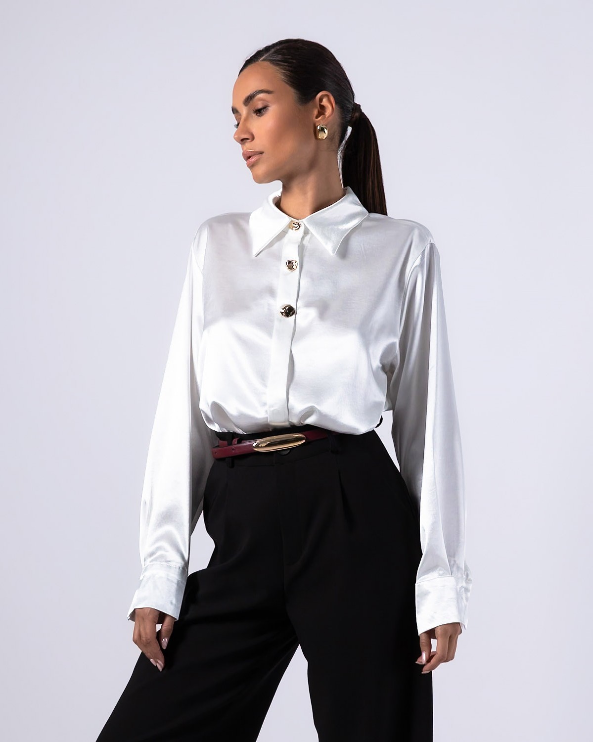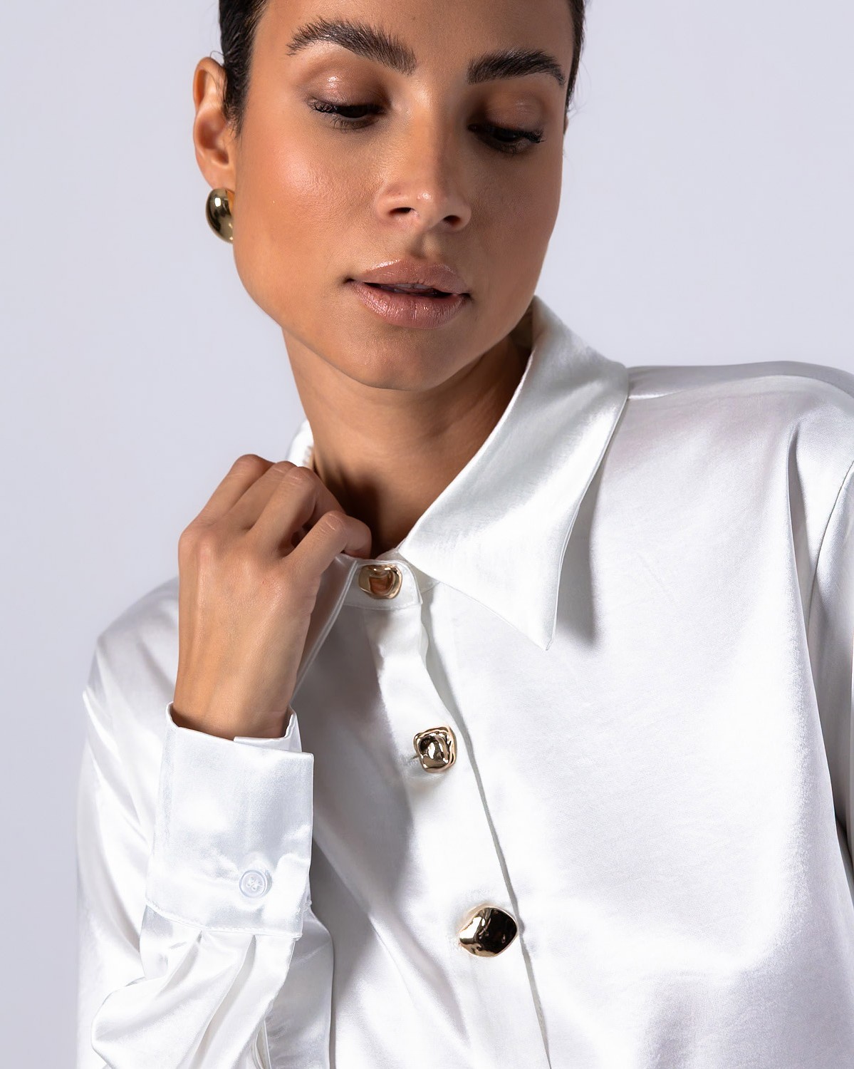 Πουκάμισο μακρυμάνικο σατέν με χρυσά κουμπιά Off white
