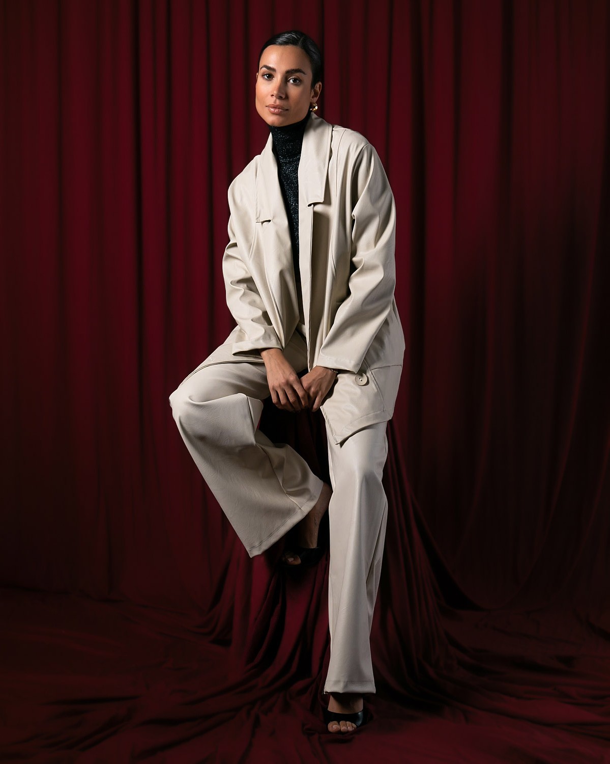 Σακάκι δερματίνη με εξωτερικές ραφές Cream