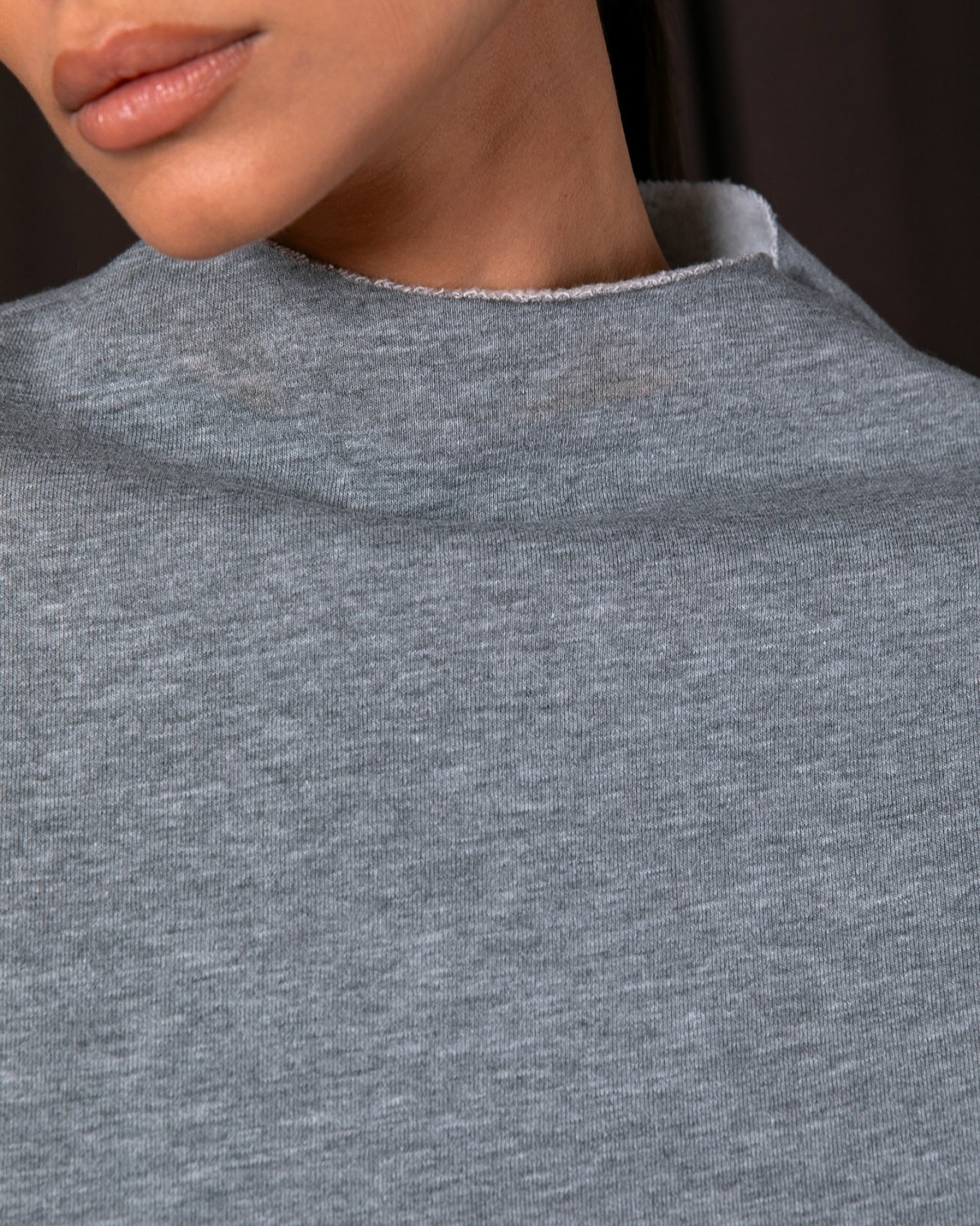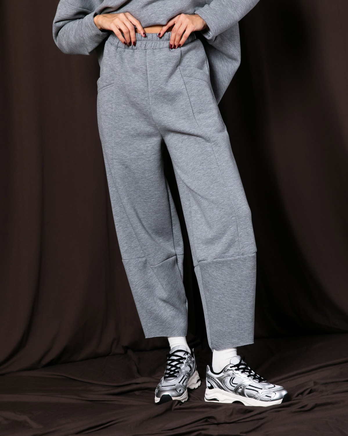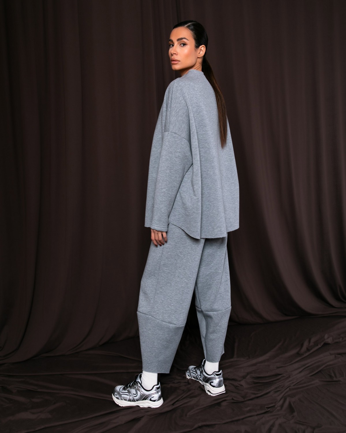 Σετ φούτερ χνούδι μακρυμάνικη μπλούζα oversized με κλειστή λαιμόκοψη - Παντελόνι carrot fit Grey melange