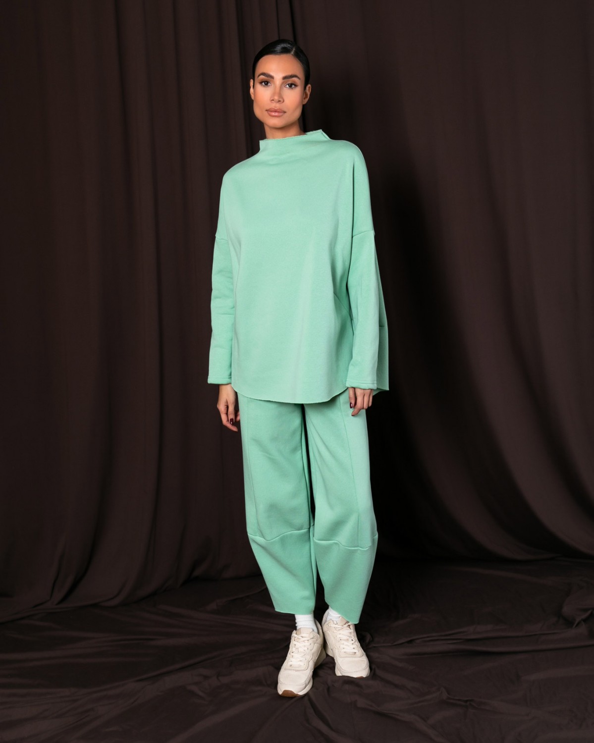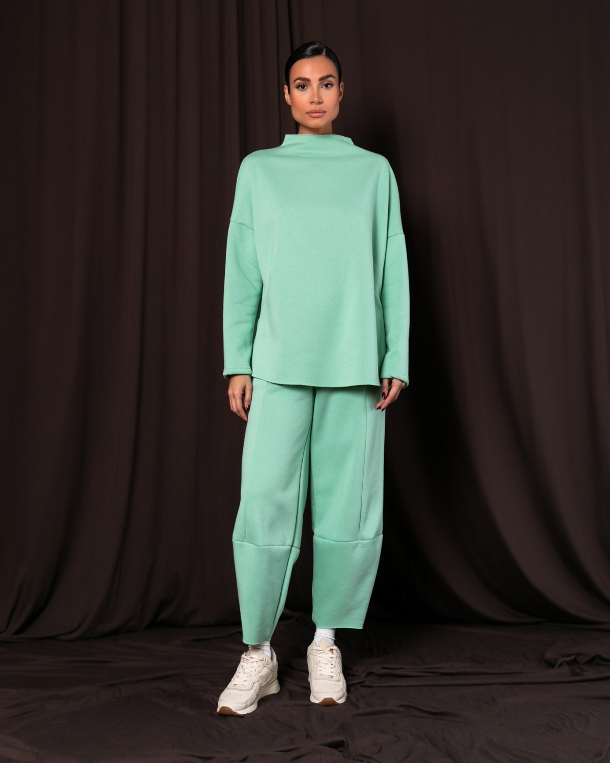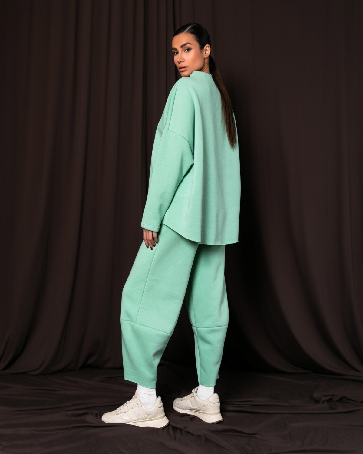 Σετ φούτερ χνούδι μακρυμάνικη μπλούζα oversized με κλειστή λαιμόκοψη - Παντελόνι carrot fit Veraman
