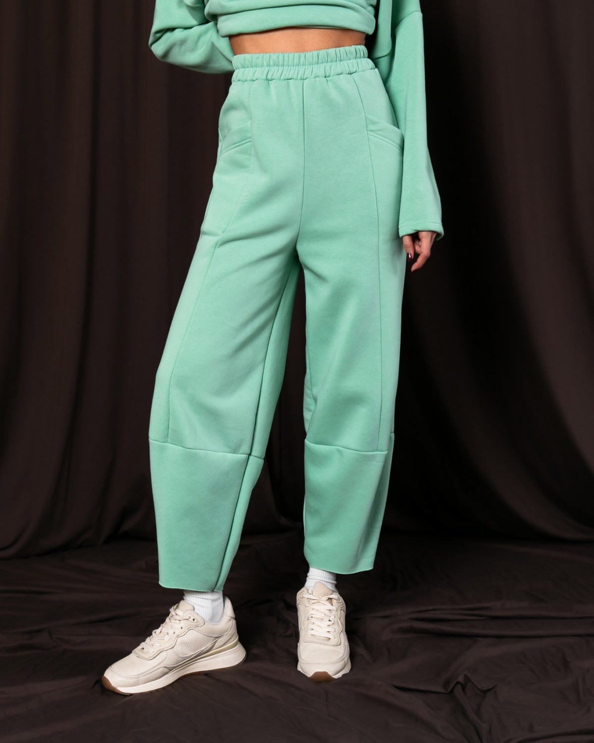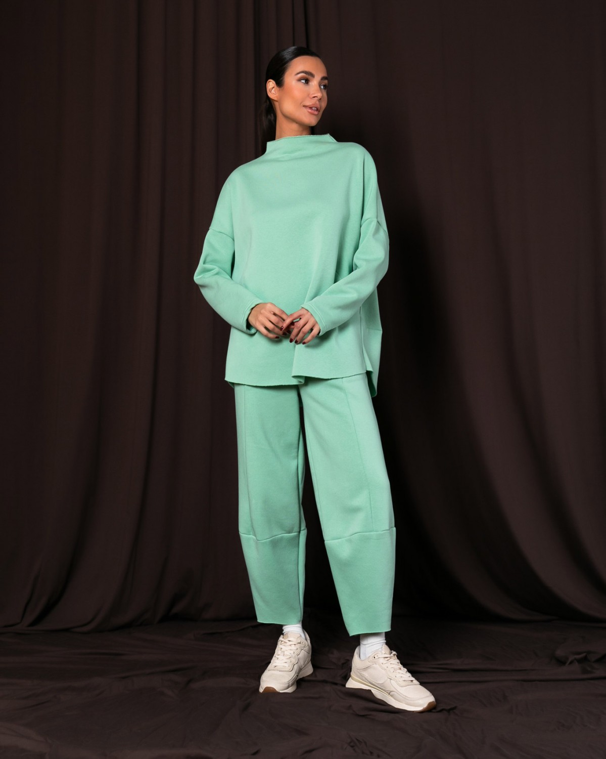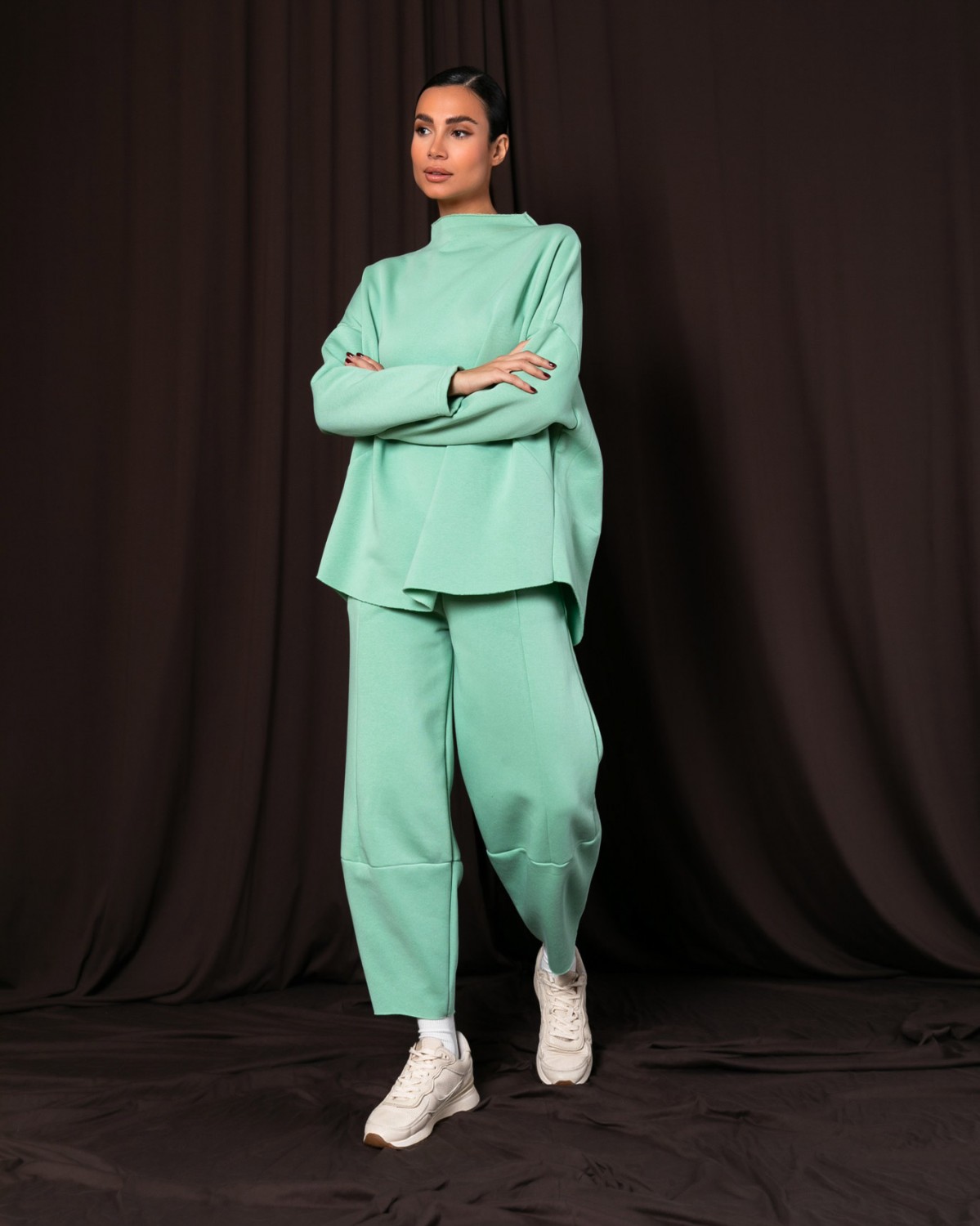 Σετ φούτερ χνούδι μακρυμάνικη μπλούζα oversized με κλειστή λαιμόκοψη - Παντελόνι carrot fit Veraman
